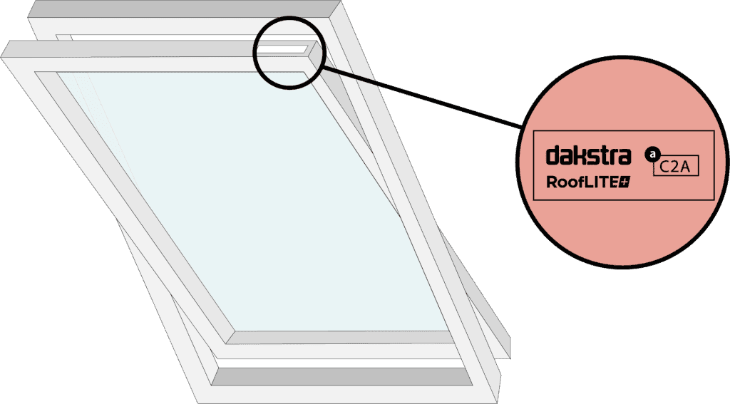 When opening your Fakro window, check for a metal, plastic, or sticker plate on the upper side of the frame.