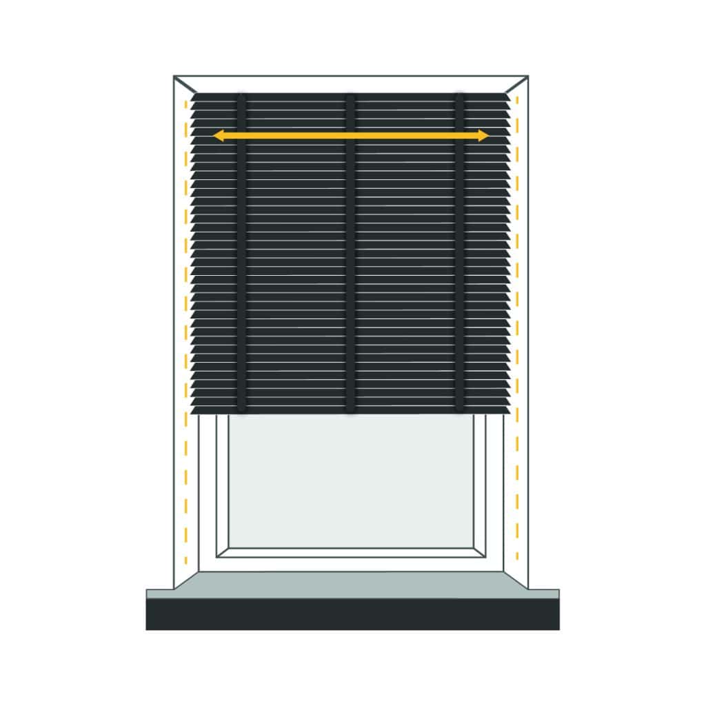 Determine the desired amount of overlap for your blind on both sides of the window recess, and measure this width accordingly. Keep in mind that due to the chain control and brackets, the fabric will be 35mm narrower than the specified size.